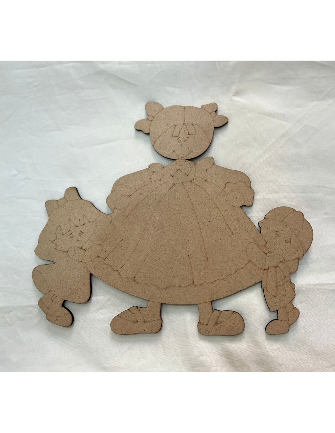 Complemento de madera DM con una imagen tierna de madre e hijos. Tamaño: 20x17 cm. Ideal para resaltar la conexión familiar y el amor en tus proyectos decorativos.