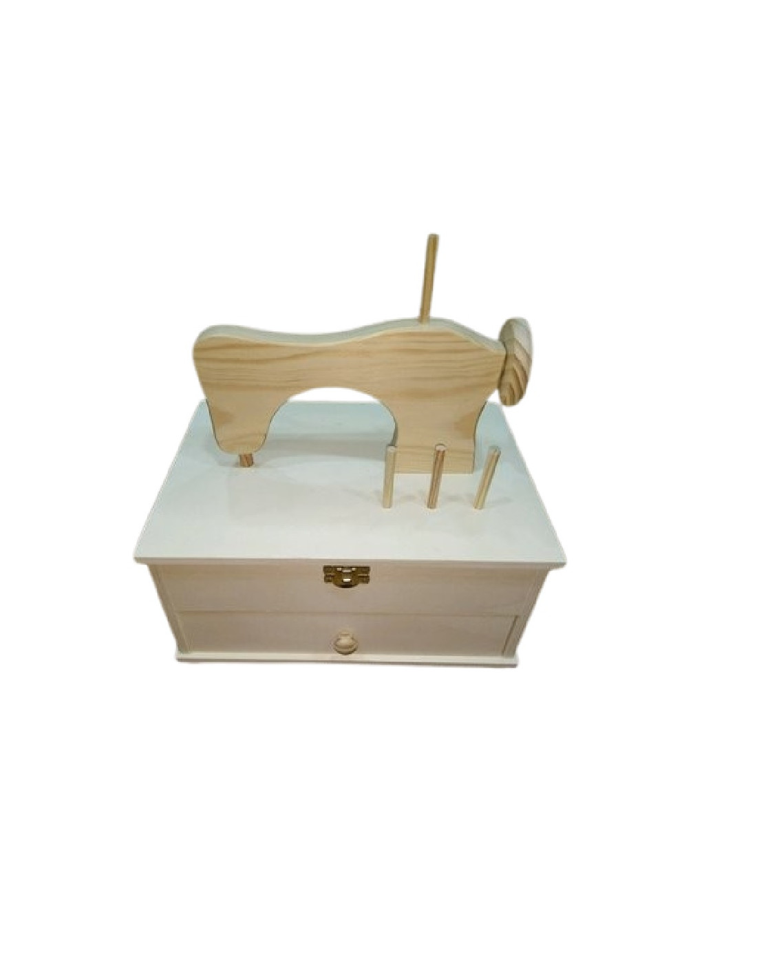 Este costurero de madera es la solución perfecta para mantener tus útiles de costura organizados y al alcance de la mano. Con una tapa que incluye divisiones en la parte superior, podrás ordenar tus hilos, agujas y otros accesorios pequeños de forma sencilla. Además, cuenta con un cajón inferior para guardar materiales más grandes o los proyectos en curso, manteniéndolos organizados y en su lugar.