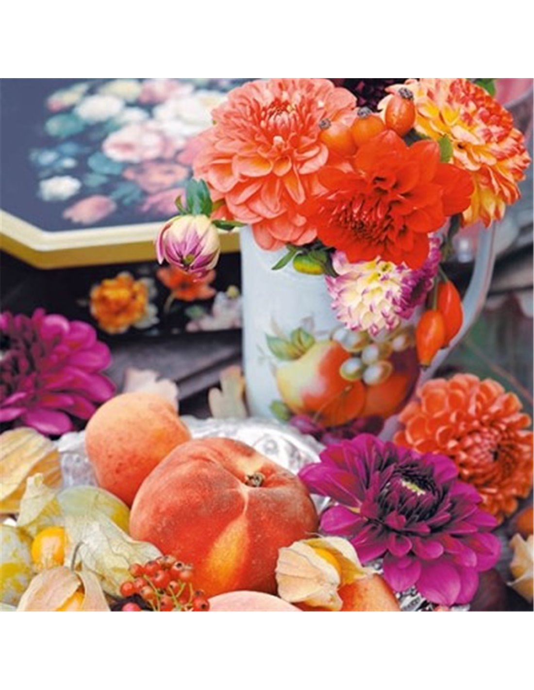 Servilletas Decoupage con imagen de jarrón de dalias.