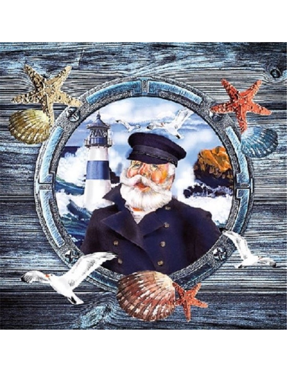 Servilletas Decoupage con imagen de capitán a través de ventana.