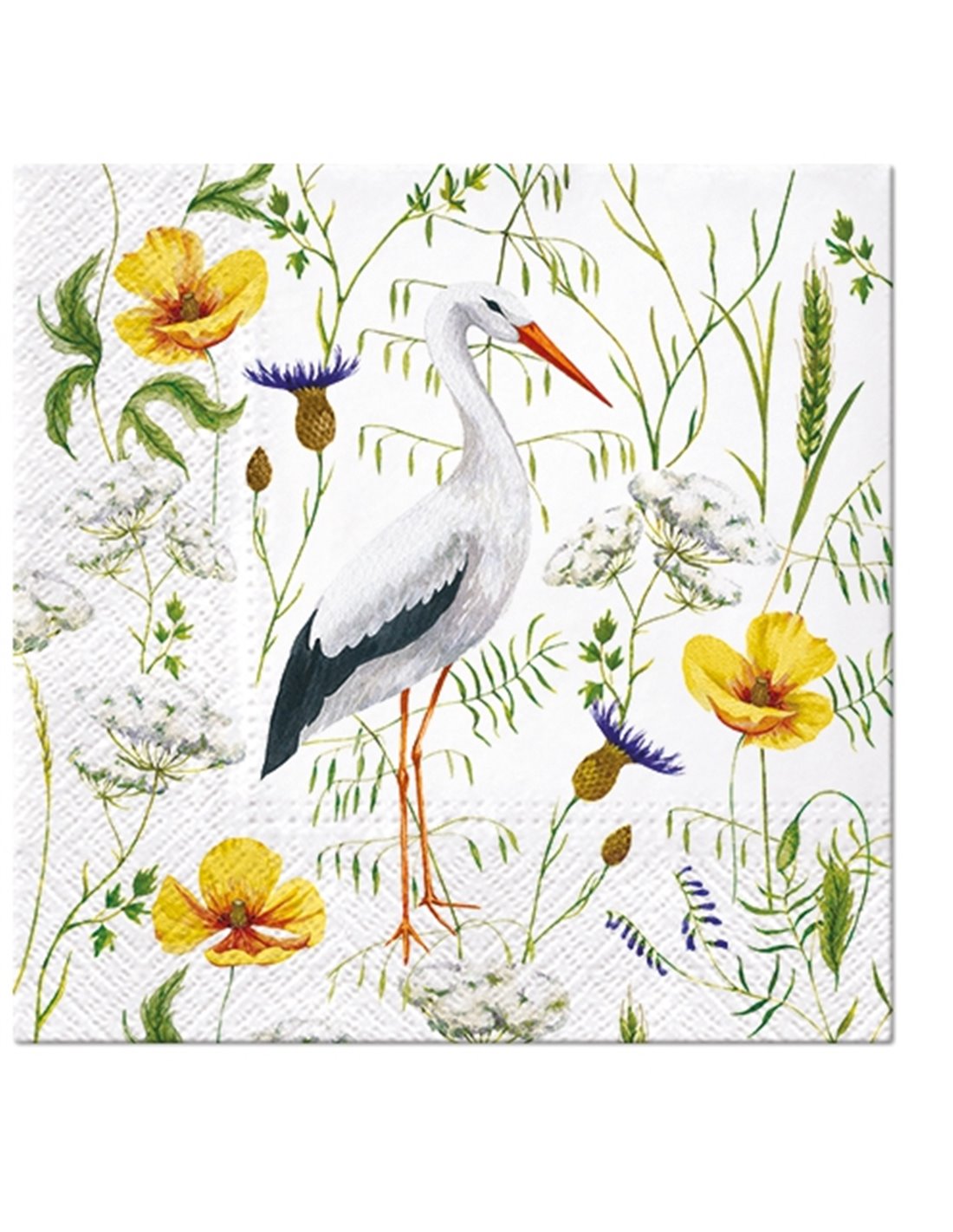 Servilletas Decoupage con imagen de Cigüeña entre flores.
