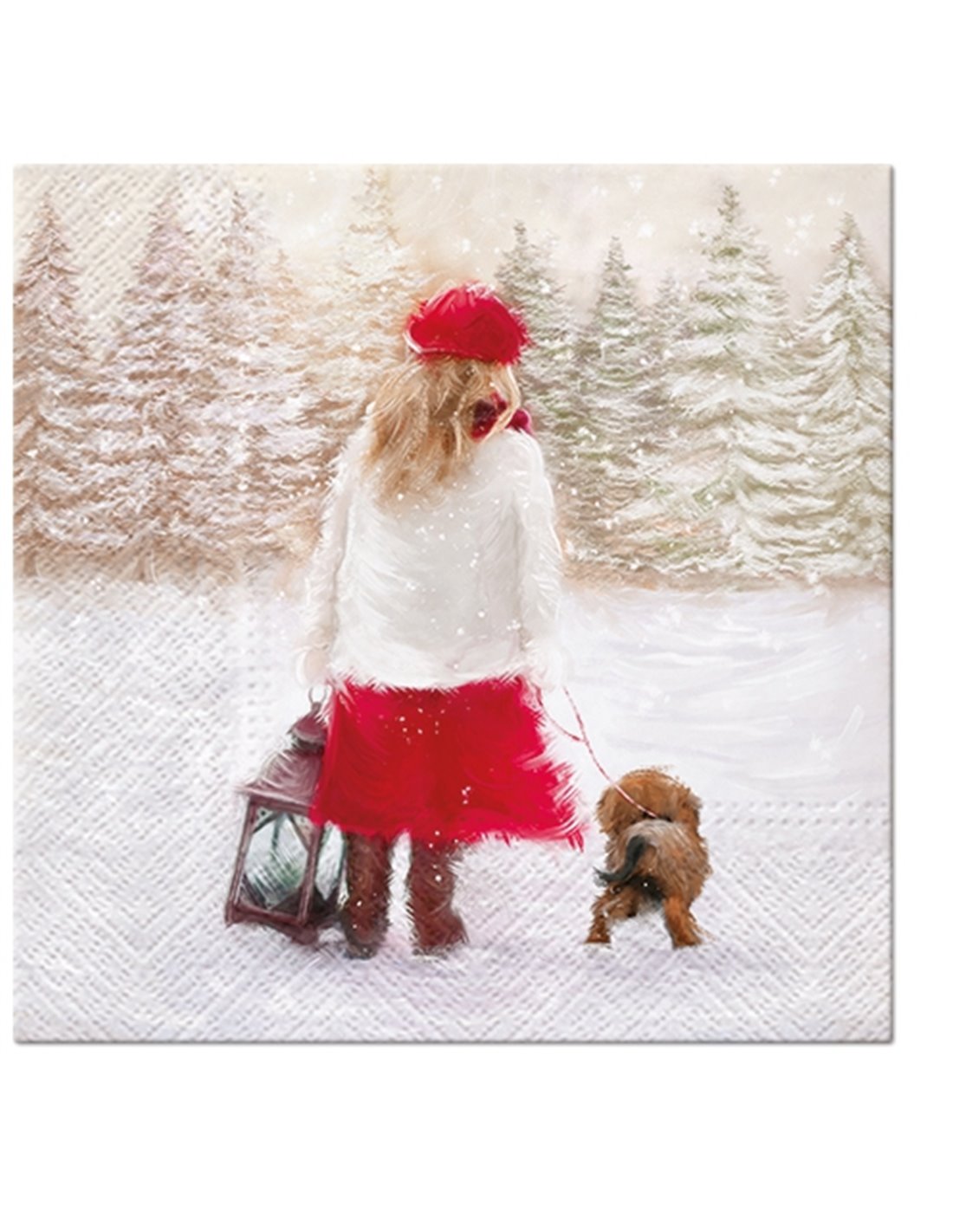 Servilletas Decoupage con imagen de Niña en la nieve paseando al perrito.